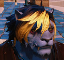 In actuality, Luxor isn't a Hrothgar at all, but a Solution 9 experiment of melding beast souls to embryos to try and make a combatant more capable of sustained resonance with beast souls. It led to their more felid appearance being a more permanent feature than just when resonating, hypothesized that being more similar to the creature made the transformation less taxing.Promoted as a mysterious gladiator for the ring fighting, that's where most of their socialization came from as they were hidden away for the most part in the labs. The "kami" they claim to attune to for their lightning aspected attacks is really the beast soul they were paired with and adapting reaper style summoning helps them obfuscate the truth.As you can surmise, when the dome merged with the Source, they escaped in the chaos and quickly took up wandering about and learning about this new world.